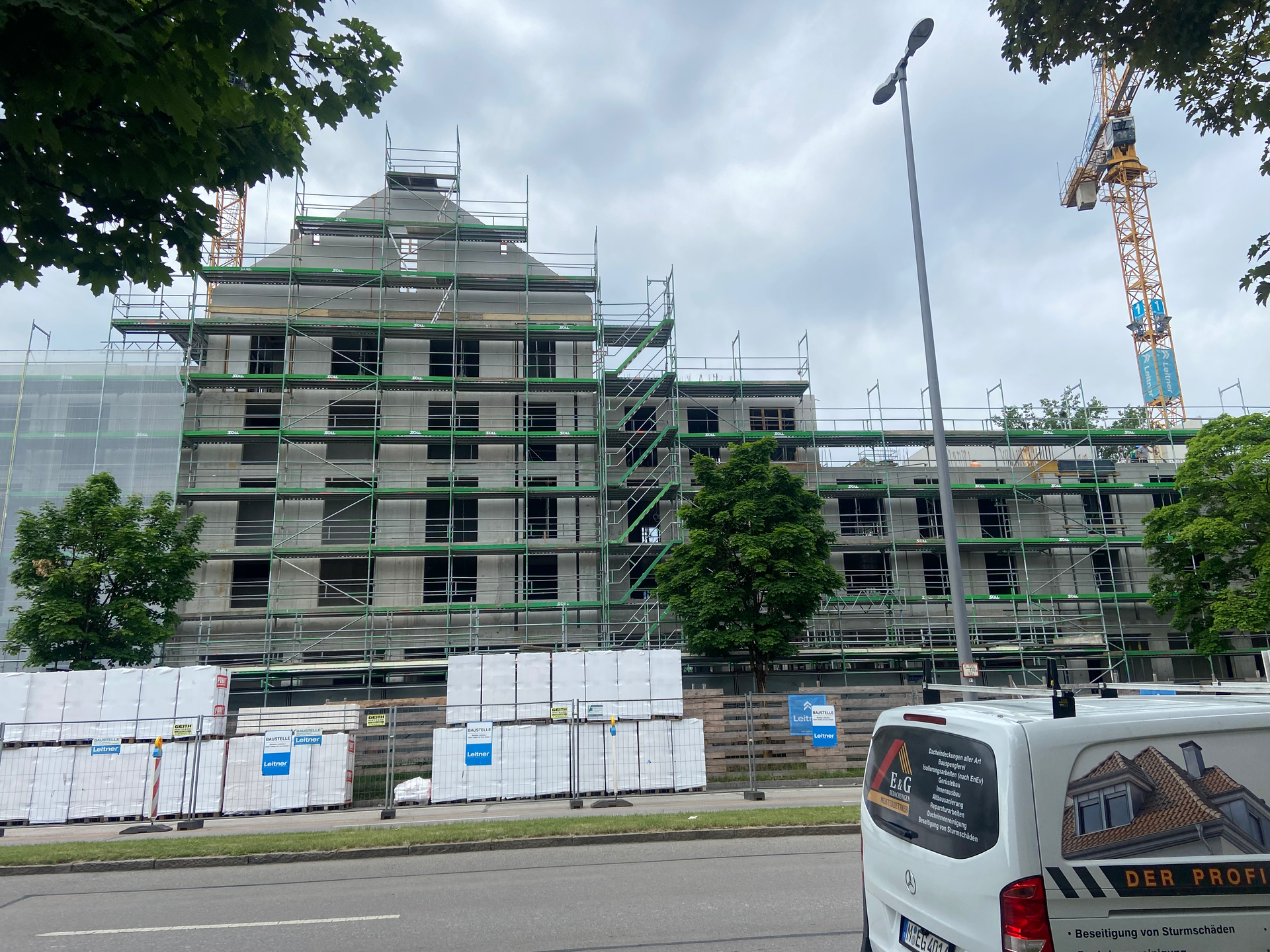 Die ersten 5-geschossigen Häuser entstehen an der Bad-Schachener-Straße mit einer Höhe von über 22 Metern. Die 4-geschossigen Häuserzeilen mit Flachdach weisen eine Höhe von ca. 15 Metern auf. Integriert in den 7 Metern hohen Dächern sind Wohnungen und Abstellflächen. Des Weiteren wurden die Häuser für den Abschnitt WA2 und WA3 mit Bauzäunen umzäunt, der Abriss wird im Sommer / Herbst 2025 erfolgen. Im Herbst erwarten wir zudem die Fällung der Bäume in den beiden Bauabschnitten. Zu den geplanten Bäumen, die gefällt werden müssen, wurden weitere 5 Bäume für die Fällung beantragt. Der BA 16 beschäftigt sich mit der Angelegenheit und den Abweichungen in der Planung.