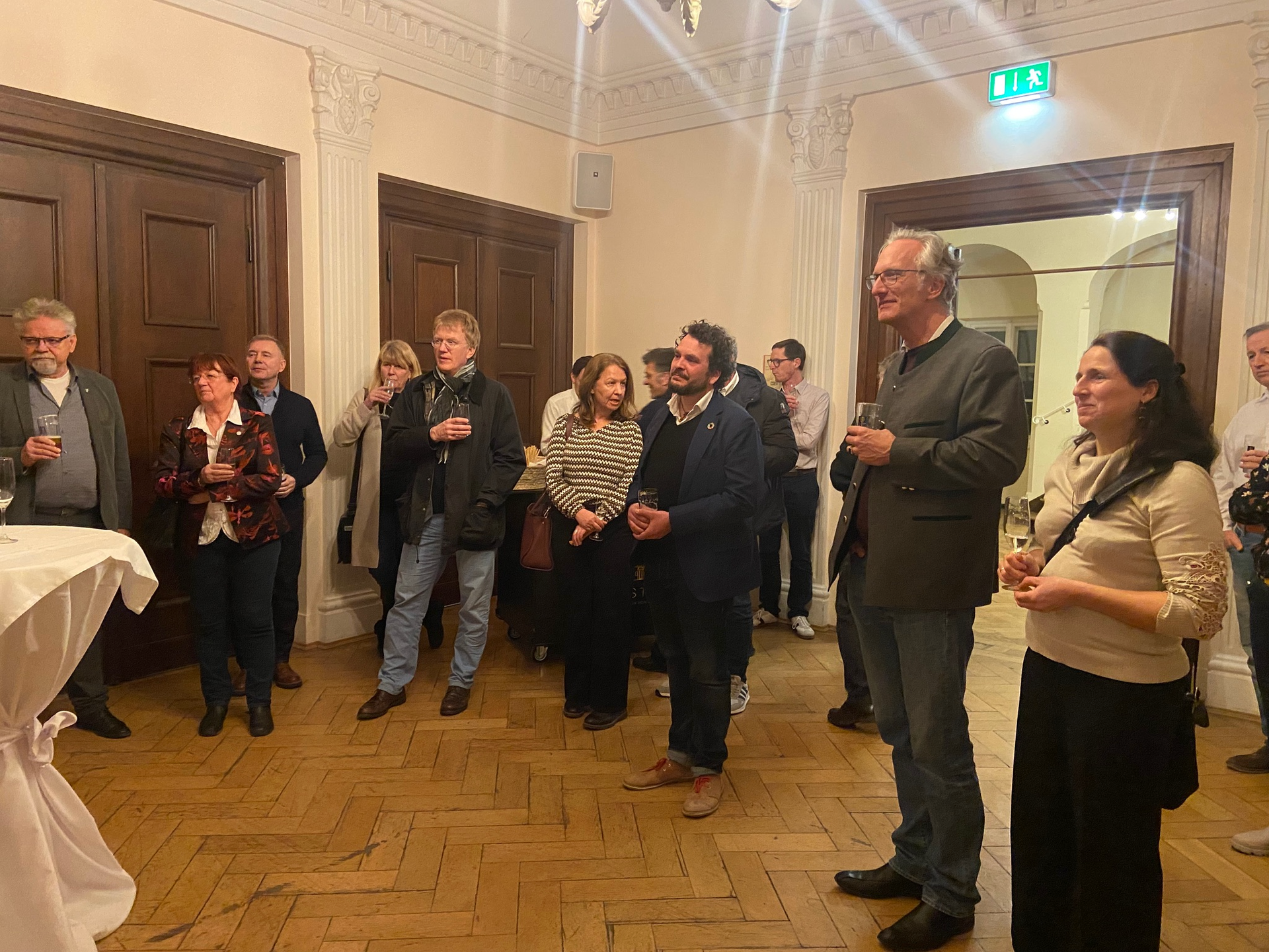 Beim anschließenden Empfang im Kleinen Saal des Scholastikahauses durften wir über unsere Mitglieder und einige Freunde des Vereins noch Vertreter der Politik begrüßen, dabei waren liebenswürdigerweise Marina Achhammer und Kurt Damaschke (beide SPD) vom BA16, Nele Joas von der ÖDP und Andreas Dorsch vom Bündnis Gartenstadt sowie André Hermann, Bundestagskandidat der Grünen und ebenfalls Ramersdorfer. Robert Brannekämper (CSU-Landtagsabgeordneter), der uns beim Ensembleschutz am Loehleplatz unterstützt hat, konnte leider nicht kommen, ebenso die geladenen Gäste aus dem Denkmalschutz Sabine Weigand und Neven Denhauser. Wir setzen aber weiterhin auf deren Unterstützung in Fragen des Erhalts von Bau- und Grünstruktur im Viertel.