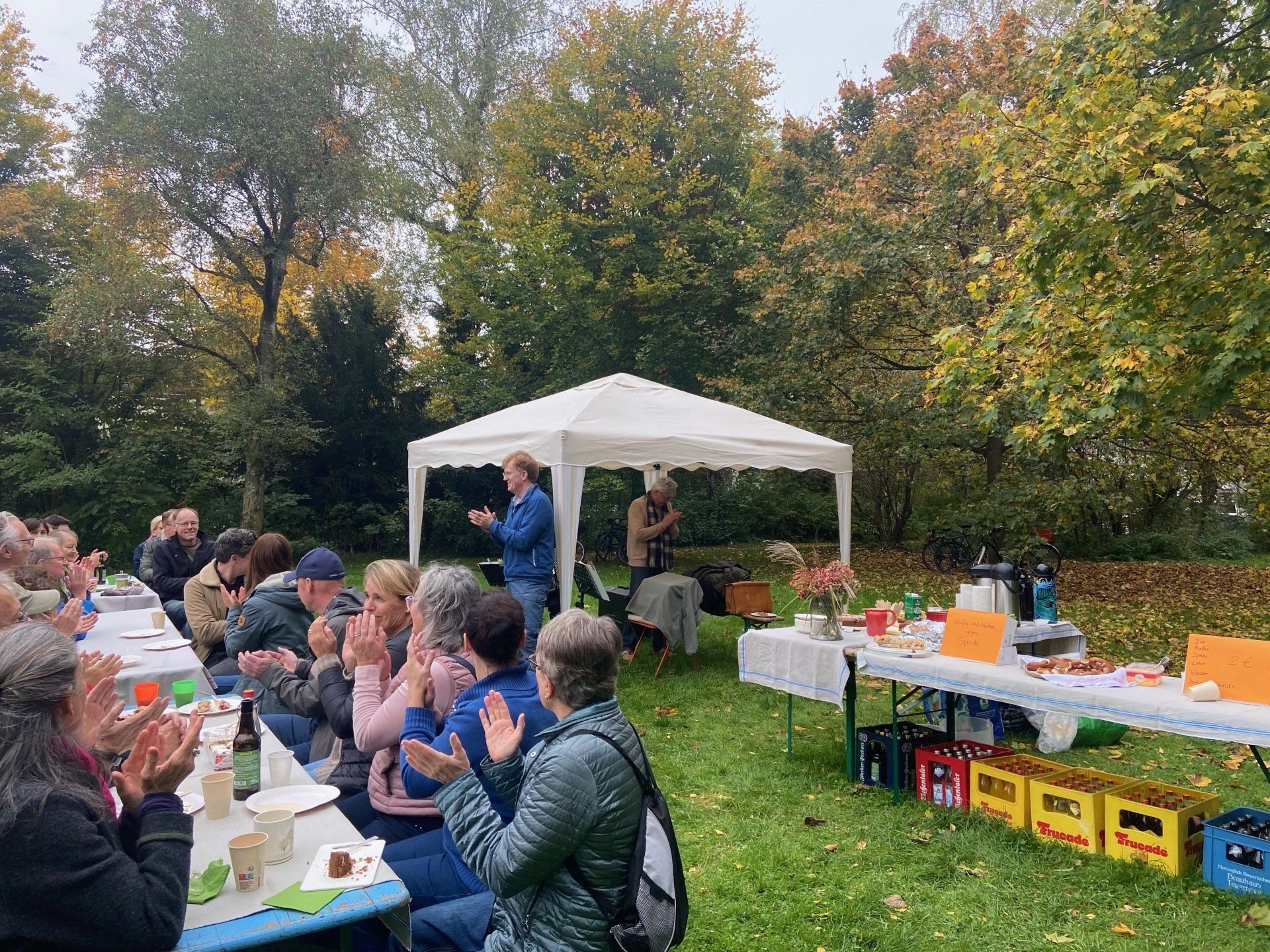 Liebe Mitglieder und Freunde der SG-Ramersdorf, wir sind noch ganz erfüllt von diesem wunderbaren Fest – und wenn ihr dabei wart, seid ihr es sicherlich auch noch. Da kamen wirklich Jung und Alt aus der Nachbarschaft zusammen, wir hatten über 90jährige, die so gut wie jeden auf den historischen Fotos der Diashow, erkannt und gekannt haben, es kamen aber auch viele junge Paare und Familien dazu, fast alle interessierten sich ausdrücklich für die Geschichte dieses besonderen Quartiers. Es gab also Austausch und Gespräche vom Feinsten – und am Ende waren alle auf der Tanzfläche, zumindest alle Oldies bei den Oldies. Unser neuer Pavillon kam auch gut zur Geltung als Schutz für die Musiker inkl. JetBand, Raduga und Anabel. Das Klavierkonzert war zauberhaft – wie der Zauberer mit seinem Auftritt für die Kids. Mit Witz und Temperament erzählte zwischendrin Jörg Haslinger seine Ramersdorfer Geschichten, da blitzte eine Welt auf, die verloren ist – aber dann doch nicht so ganz, denn die Nachbarschaft hält ja nach wie vor zusammen in diesem sehr besonderen Viertel. Dass wir dazu ein Stück beitragen konnten als Verein, das freut uns ungemein – und zugleich wissen wir, dass ohne die Nachbarn und auch ohne euch alle von der SGR alles nix gewesen wäre. Denn natürlich braucht man Geld, um so ein Fest überhaupt ausrichten zu können. Daher gilt unser besonderer Dank allen Mitgliedern und ganz besonders dem Bezirksausschuss BA16, der dieses Fest großzügig unterstützt hat. In diesem Sinn mit schönen Grüßen im Namen aller Aktiven, Bettina Rubow Die Eröffnungsrede zum Download