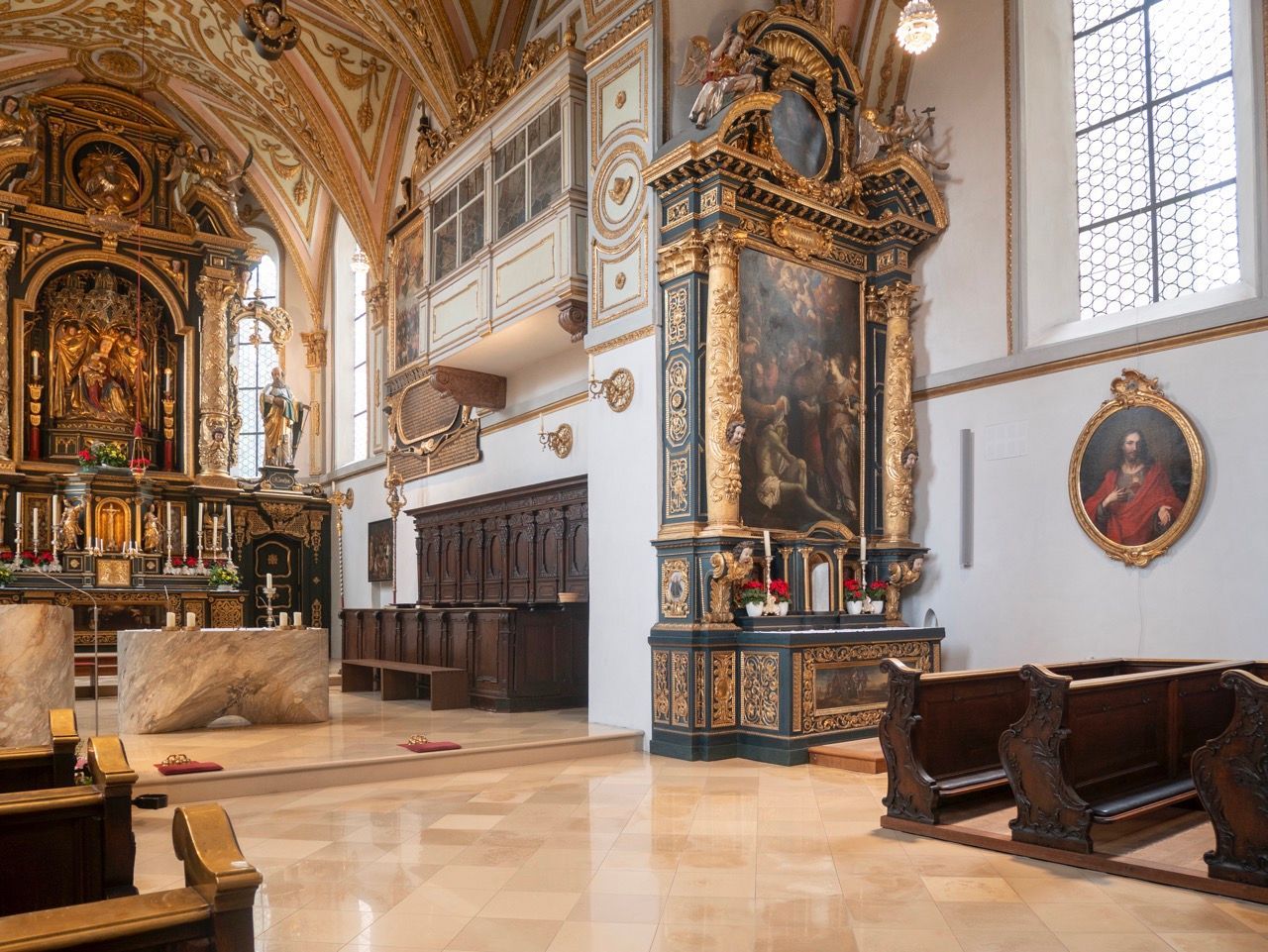 Danach führte Armin Sinnwell-Rubow mit viel historischem Backgroundwissen durch die Wallfahrtskirche und ließ auch die Kunst darin, darunter den Erasmus-Grasser-Altar, lebendig werden. Wo sich wohl der Kreuzpartikel befindet? Wer dabei war, wird den Ort in Maria Ramersdorf nicht mehr vergessen. Ein Orgelkonzert mit Christoph Koscielny beschloss die Kirchenführung.